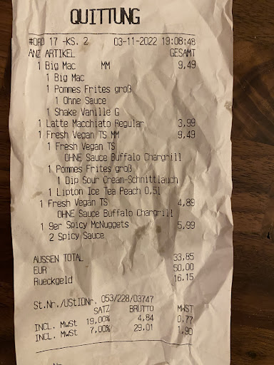 Fazit ist, dass ich mir gerne gewünscht hätte, dass mcs die plantbased nuggets so kennzeichnen würden, dass der Kunde auch einfacher prüfen kann, dass er/sie/dey die richtige Bestellung bekommen hat. So wie bei Burger King.