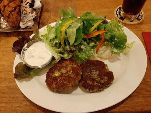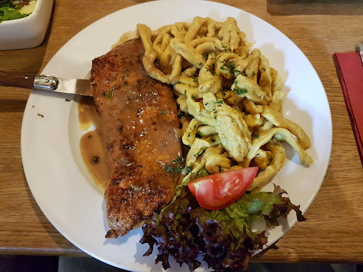The food sucked. There is no service because it’s a self service kind of thing. I spent 18 euros on a “cordon bleu” schnitzel and I kid you not, I’ve had better cordon bleu frozen from a box from the grocery store. the croquettes they charge you 4 euro for I didn’t even eat them they were dry as hell. My wife had the hardest schnitzel we’ve ever had in all of Germany she didn’t even eat half of it because she couldn’t even cut the thing with the knife. So if you want to throw away your money on crappy food go for it. It was so bad we left and went to another restaurant so we could have some good...