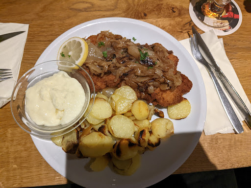 Sehr , sehr netter Empfang. Trotz großem Andrang ein überaus freundlicher und kompetenter Überblick. Das Lokal ist super gemütlich eingerichtet und mit sehr viel Liebe dekoriert. Nicht zu viel aber geschmackvoll. Jeder ist für jeden Gast oder Tisch zuständig und obwohl es dort keinen einzigen freien Platz gab, machen die Mädels super gut. Keine einzige Bestellung wurde vergessen oder hat lange gedauert. Das Essen ganz nach Mamas Küche. Schnitzel mit hausgemachtem Kartoffelsalat und leckerem Kochkäse ist ein Gedicht. Ich stelle mir vor, wie viel dort los ist , wenn die Leute draußen sitzen können. Das Rumpsteak war übrigens ebenso lecker wie die Schnitzel. Und als Vorspeise war die Leberknödelsuppe der Hammer. Ganz toll, wir kommen wieder und reservieren auch vorher, weil es fast unmöglich ist mit einer größeren Gruppe ohne Reservierung dort einen Platz zu bekommen. Das spricht denke ich für sich. Danke für einen schönen Abend . PS. Und was ich noch vergessen habe, das Brot schmeckt so gut, das ich das gar nicht beschreiben kann....
