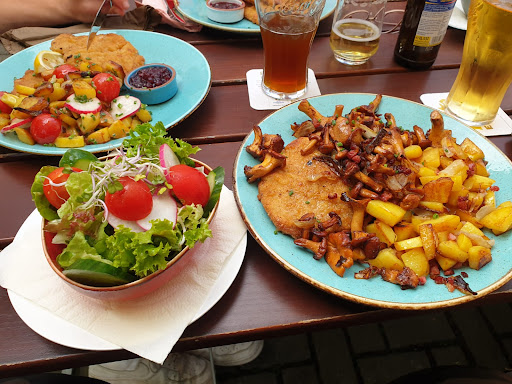 Wir hatten Schnitzel mit gebratenen Pfifferlingen: für die Menge an Pilzen war das Gericht schon geschenkt, die Bratkartoffeln hätten aber zum Teil noch gekonnt BBQ Burger: lecker aber zu wenig Sauce, keine Sauce/Ketchup zu den Pommes Falafelburger: eher enttäuschend, alles fiel vom Brötchen, Ajvar so wenig, dass nicht zu schmecken, insgesamt auch trocken, keine Sauce/Ketchup zu Pommes, Falafel sahen sehr nach Fertigprodukt aus, dann lieber selbst machen, zu einem Pattie formen und ein weiteres vegetarisches Gericht auf die Karte zusätzlich zum Burger, aber prinzipiell leckere Idee Wiener Schnitzel: eigentlich perfekt aber dafür gibt's nen Punkt Abzug für den Service. Auf der normalen Karte gibt's Schnitzel Wiener Art vom Schwein, allerdings gab's den Tag echtes Wiener Schnitzel auf der Tageskarte. Bestellt wurde "Wiener Schnitzel" gebracht wurde jedoch Wiener Art. Dem Besteller war's dann egal, aber die Bedienung hätte entweder fragen oder das bestelle bringen müssen. Ansonsten hätten 3 Leute gegessen und 1 hätte nochmal warten müssen. Insgesamt war der Service flott, freundlich und fragte auch regelmäßig nach...