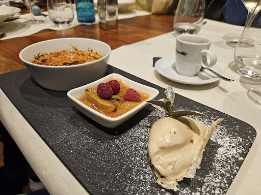 Das Essen: Abgesehen von dem nicht beachteten Änderungswunsch durch den Service war das Essen nicht schlecht. Leider waren bei zwei von vier Gerichten jedoch die Beilagengemüse kalt. Der Salat, der zu den beiden Gerichten auf der Karte versprochen wurde, wurde erst zum Tisch gebracht, nachdem die Hälfte des Hauptgerichts bereits verzehrt war. Wir verzichteten auf ein Dessert.