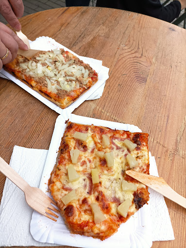 For me this is the best standing caffe/restaurant and the place to get the best pizza in Herford. If you are in the area and would like some great street food this is a good place to find it. They offer both take away and eating directly outside the kiosk standing at one of there high tables (smaller tables are available for those who need them). As others have stated the Pizza is excellent with great texture and and flavour. They also offer pasta dishes which I have not tried but I intend to do so. If you eat outside the kiosk the square slice of pizza is served on a plate with a metal knife and folk if you takeaway your pizza it comes in a small pizza box. I must confess it's hard to walk past without...