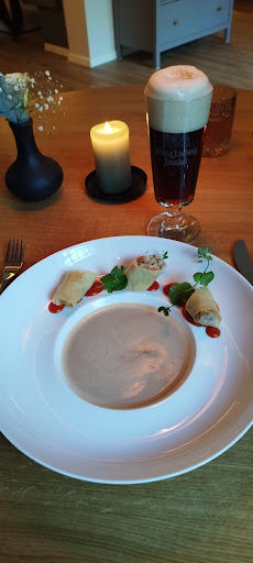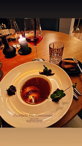 Das Menü bietet eine kleine aber exzellente Auswahl an köstlichen Gerichten. Die Qualität der Zutaten und die Kunstfertigkeit, mit der jedes Gericht zubereitet wird, sind absolut beeindruckend. Ich hatte das Vergnügen, als Vorspeise eine Zwiebel Pilz Consommè und als Hauptgang ein Schottisches Wester Ross Lachsfilet zu probieren, und es war einfach perfekt zubereitet - zart, saftig und voller Geschmack.