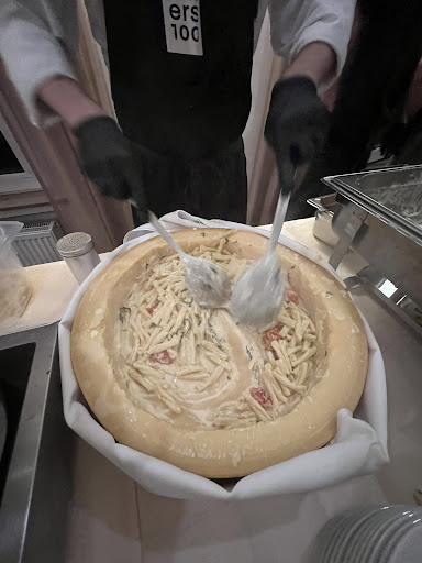 Bis zum Dessert hatte es nun wieder eine gefühlte Ewigkeit gedauert. Nach etlichem Warten ging ich erneut hinein und fragte, ob unsere Gäste denn in etwa zeitgleich mit dem Dessert auch einen Kaffee, Espresso etc bekommen können. Kommentar der Junior-Chefin: „Ich schicke Ihnen jemanden vorbei, der nimmt die Bestellung auf“. Gesagt getan, jedoch kam gleichzeitig mit dem Kellner, der die Bestellungen für 21 Kaffee-Getränke aufnehmen wollte auch schon das Dessert. Dieses konnte weder schmelzen, noch warm oder kalt werden und hätte durchaus noch ein paar Minuten in der Küche zurückbehalten werden können, um der Theke Zeit für die Zubereitung der warmen Getränke zu geben. Abgesehen davon, dass das Dessert (dreierlei Mousse) nach Absprache eigentlich pro Person auf einem Teller hätte platziert werden sollen, wurden stattdessen achtlos mehrere große Platten auf die Tische gestellt, auf denen kleine Schälchen mit den Desserts waren.
