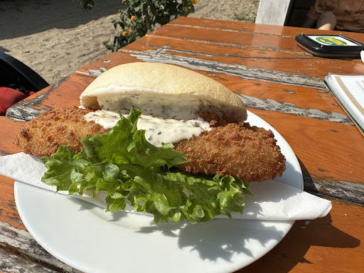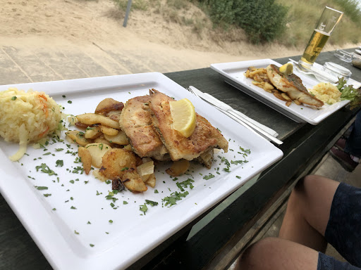 Read moreTraditionsreiches, lokales, familiengeführtes Selbstbedienungsrestaurant mit frischem Fisch aus eigener Fischerei. Preisleistungsverhältnis war super - selten so frischen und leckeren Fisch gegessen! Qualität, Geschmack, Portionsgröße von Fisch und Beilagen (hervorragender Krautsalat und Bratkartoffeln) waren 1A! Sehr schöne Lage mit Urlaubsflair direkt am Sandpfad durch die Dünen zum Strand. Man bestellt (Essen und Getränke) und zahlt an der Theke (wo man auch lecker frischen und geräucherten Fisch etc. zum Mitnehmen kaufen kann), erhält dann einen Puck und wenn dieser brummt und piept, holt man sein frisch zubereitetes ansprechend und liebevoll angerichtetes Essen auf Porzellantellern an der Theke ab. Es gibt unterschiedliche Plätze draußen auf der überdachten Holzterrasse mit Heizstrahlern oder auf Holzbänken und Tischen seitlich mit direkten Blick aufs Meer oder auch Hochtische und Strandkörbe. Auch eine Gästetoilette ist verfügbar. Alles sehr gepflegt und einladend. Das Personal war ausgesprochen freundlich, kompetent und top...