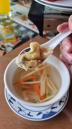 Da ich genug von Fisch & Co. hatte und auch keinen großen Hunger, wollte ich mir eine asistische Suppe gönnen. Es gab Büfett, was nicht sehr anmächelig aussah und zudem viel Frittiertes hatte, wovon mir schlecht wird, des weitereb süß-sauer, gebratene Nudeln etc., was nicht so meins ist, also fragte ich, ob man auch a la card essen könne. Ich bestelle ja kein Büfett, von dem ich Dreiviertel der Speisen nicht essen mag. Antwort: Ja, aber sehr teuer, nehmen Sie Büfett. Ich sagte, ich wolle kein Büfett, daraufhin wurde mir sicher 6x in der Folge resolut das Büfett ans Herz gelegt. Vermutlich hat es sie angegurgt, etwas extra aus der Karte kochen zu müssen. Dann soll mans halt nicht anbieten. Ich fragte, ob die Thaisuppe Tom kha kai sei, Antwort: Nein, essen Sie Büfett, da gibts diese Suppe. Ich sagte, ich wähle was aus der Karte, da wurde wieder auf dem guten Preis des Büfetts herumgeritten. Ich wiederholte dann erneut, dass ich das Büfett und das fette Frittierte nicht möchte, selbst wenn es günstig sei. Man schaute mich mit Bedauern an, als würde ich einen großen Fehler begehen. Ich bestellte dann zwei Vorspeisen - Wantansuppe und Hummerkrabbensalat. Bedienung mit einem verständnislosen Auflachen: Mhhh, ist wie Büfett. Ich: Ähm, nein. Ich fragte dann, ob ich ein Schälchen Reis bekäme, man könne es auch verrechnen. Sie: Nein. Sie haben Vorspeisen. Kein Reis. Nach meiner Intervention bekam ich dann für 2.50 Euro doch ein Schälchen Reis (Aufpreis ist fair), mit der Bemerkung Reis Frau. Ob Hier ist Dein Reis, Frau! gemeint war oder dass ich eine Reisfrau bin, whatever it is, who knows. Das Essen war das schlechteste asiatische Essen, was ich je hatte. Und ich habe tausendfach auf der ganzen Welt asiatisch gegessen. Die Suppe schmeckte nach nichts, die Füllung der Wantans ein hartes undefinierbares Etwas. Der Salat, der in der Karte mit scharf markiert war und den ich extra scharf bestellt hatte, war ein hundsgemeiner europäischer Salat (ein bisschen Eisberg, Gurke, 2 Stk. Tomaten) mit 3, 4 verlorenen Krevetten (keine Hummerkrabben!) in einer weißen Mayonaisesosse. Null scharf, null asiatisch. Wie man so etwas anbieten kann, ist mir ein Rätsel. Ich fragte nach Chilli, es kam Sambal Oelek, mit der Bemerkung: Bei Euch ist das gut. (Vermutlich war gemeint Euch Nicht-Asiaten kann man ja alles auftischen.) Das gibts eigentlich in Indonesien/Malaysia, in der Thaiküche nicht, bei den Chinesen auch eher nicht. Aber mit mehreren Löffeln Sambal konnte mans zumindest essen. Zum Schluss wurde ich nochmal darauf hingewiesen, dass ich ja gewissermaßen Büfett bestellt hatte. Völlig absurd. Stäbchen gabs auch nicht. Die Bedienung lächelte die ganze Zeit und wirkte oberflächlich freundlich, behandelte mich aber, als sei ich nicht ganz dicht, weil ich nicht das Büfett in Anspruch nahm. Sie wollte mich regelrecht dazu nötigen. Mit dem Preis hatte sie Recht. Für bedeutend weniger Essen zahlte ich signifikant mehr. Die anderen Gäste füllten mehrfach Berge auf ihre Teller, als gäbs kein Morgen mehr. Ich dachte schon, mit meinen Geschmacksnerven stimmt etwas nicht, aber nach dem Studieren anderer Rezensionen gehen da viele dacor mit mir. Die Bedienung räumte mit der Bemerkung: Kleiner Magen! kichernd ab. Zum Glück, die "Acht Köstlichkeiten" vom Büfett hätte der gar nicht vertragen. Draußen spielte ein Alleinunterhalter It never rains in Southern California ... und besseres asiatisches Essen gibts dort auch. 🤣