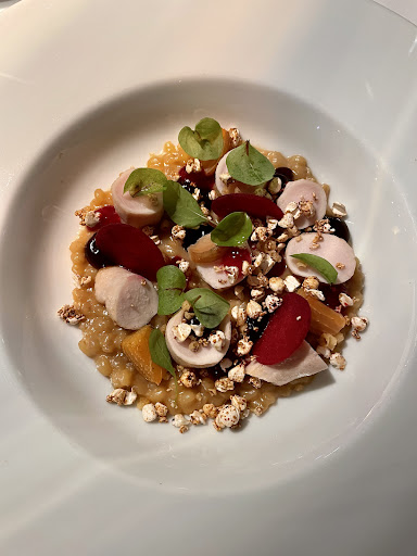 Unser Highlight in Heringsdorf. Ich bin immernoch überwältigt von dem Erlebtem. Von Service, über Getränke und dem Essen war alles tip top. Wir hatten Glück und bis auf ein weiteres Paar, hatten wir das Restaurant für uns alleine. Wir feierten kleine Mini-Flitterwochen und der Tisch war für uns eingedeckt, es gab Champagner aufs Haus und alle kamen mal vorbei um uns zu gratulieren. So konnten wir mit Adrian (unserem Sommelier), Steffen (Restaurantleiter) und Jan (dem Küchenchef) witzeln, uns austauschen und sogar Fotos machen. Man gab sich mit uns sehr viel Mühe und war stets daran interessiert uns alles zu erklären. So konnten wir neue Weine für uns entdecken. Wenn sich etwas in deinem Mund anfühlt, als wäre es Herbst und man schwelgt in Erinnerungen, ja dann bist du genau richtig. Die Grüße aus der Küche waren sowas von lecker. Selbstgemachtes Brot, salzige Butter mit Spinatpulver. Spinat Espume mit Kaviar und gedünsteten Zwiebeln... hach, lecker. Lediglich das Restaurant selber, könnte moderner sein. Wir wünschen dem Team weiterhin gutes Gelingen und sagen Danke für diese Erfahrung und geben eine klare Empfehlung für Jan, Adrian und...