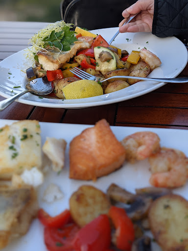 Read moreIch hatte 3 Tage vorher angerufen und einen Tisch reserviert. Als wir um 18 Uhr kamen waren angeblich alle Tische auf der Terrasse reserviert, obwohl auf zwei freien Tischen kein Reserviertschild stand. So mussten wir erst drin sitzen. Schon das Betreten des Gastraumes war schwierig , da ich im Rollstuhl sitze und dieser nicht durch die Tür passte. Erst als wir fragten, ob man die 2. Flügeltüren öffnen könnte, bequemte die Kellnerin sich dazu. Direkt neben dem Eingang standen regungslos ein Mann und eine Frau, deren Funktion mir unklar war und mich an die Zeit kurz nach der Wende erinnerte. Die Toiletten waren natürlich im Keller und als ich nach einer ebenerdigen Behinderten-toilette fragte, wurde ich an -geschaut als käme ich vom anderen Stern. Als wir in der hintersten Ecke zunächst als Einzige in dem Gastraum saßen, fühlte ich mich nicht sehr willkommen, so dass wir kurz davor waren diese ungastliche Stätte zu verlassen. Vielleicht haben wir damit zu lange gezögert, denn plötzlich kam die Kellnerin und bot uns einen schönen Platz an der Terrasse mit Meerblick an. Die Getränke brachte sie hinterher und meinte, die Toilette sei auch mit einem Lift zu erreichen. Wir wurden relativ zügig bedient und das Essen war sehr lecker. Aus diesem Grund vergebe...