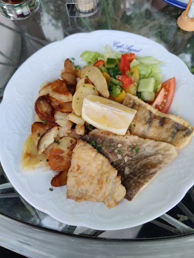 Man kann sich über die Speisen (Begleitung: Schnitzel Hamburger Art/Ich: Fischplatte) nicht sehr laut beschweren, allerdings handelt es sich hier eher um Kantinenspeise. Das Schnitzel war zwar groß, dafür allerdings auch sehr dick, was das Verzehren erschwerte. Gute Köche wissen, dass es ein besonderer Gaumenschmaus ist, wenn das Fleisch möglichst dünn mittels Schmetterlingsschnitt zugerichtet wird.