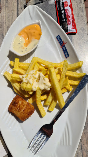 Read moreWer Fisch auf Usedom essen möchte, kommt über Kurz oder Lang an Domke nicht vorbei. Besser wäre es allerdings! Betritt man das Lokal in Heringsdorf, fällt zunächst das ansprechende Vintage-Ambiente ins Auge. Bei genauerer Betrachtung erweist sich aber fast alles als gefakter maritimer Kitsch. Als nächstes offenbart sich der pathologische Drang zur Selbstdarstellung des Inhabers. Beginnend mit der albernen Selbstbezeichnung des "Fischsommeliers". Mich ärgert der inflationäre Missbrauch dieses Begriffes mittlerweile sehr. Ein Sommelier ist ein ausgewiesener Weinexperte! Ein Klempner ist ja auch kein Rohr-Sommelier! Weiter geht es mit den absurden Weltrekorden, welche sich im Großen und Ganzen auf die groteske Größe von Produkten beschränken - erinnert ein Bißchen an XXL-Schnitzelbuden. Aber den krönenden Abschluss der Selbstdarstellungspsychose bildet die Promi-Gallerie. Hier sieht man den Inhaber mit allen möglichen bekannten (oder weniger bekannten) Persöhnlichkeiten des öffentlichen Lebens in stets gleicher Pose: Arm in Arm mit Daumen hoch. Selbst namhafte Köche haben sich dafür hergegeben, was sie in ihrem Ansehen direkt bei mir ins Bodenlose sinken ließ. Und damit wären wir beim eigentlichen Thema: Ich liebe Backfisch! Er ist weder eine ausgewiesene Delikatesse noch besonders hochpreisig. Dennoch verdient er eine anständige Zubereitung aus echten und qualitativ einwandfreien Lebensmitteln. Dies scheint der Fischsommeliere aber wohl anders zu sehen. Ich bekam ein minderwertiges Tiefkühlprodukt serviert. Das weiße Innere (vermutlich Fisch) bestand aus zerkleinertem und gepressten Irgendwas mit einem Geschmack der nebst Geschmacksverstärkern ganz entfernt an Fisch erinnerte. Umhüllt war das Ganze mit einer Masse aus Stärke, Bidemitteln und ebenfalls Geschmacksverstärkern. Tiefkühltruhe-Fritteuse-Teller-Rausdamit! Im Übrigen waren sämtlich weitereren Bestandteile dieser Speise ebenfalls Fertigprodukte, der Salat, die Soße, die Beilage....alles aus Tüten, Gläsern oder Eimern. Das bekommt man so bei jedem Discounter für einen Bruchteil des bei Domkes geforderten Preises. Das Bier wahr kalt und frisch gezapft....immerhin! Über Service muß man hier nicht sprechen. Er existiert schlicht nicht. Es gibt ein Kasse und einen Bestelltresen. Die Dame die dort tätig war, hatte ebenfalls den Charme und die natürliche Freundlichkeit einer unterbezahlten Discounter-Kassiererin. Mein Fazit: Bei Domkes Fischpavillion handelt es sich meiner Meinung nach um einen durch reißerisches Marketing gnadenlos überbewerten Fischimbiss, der zu Preisen der gehobenen Gastronomie verkauft. Der Backfisch auf einem Ruhrgebiets-Weihnachtsmarkt ist besser, frischer und preiswerter! Und das ist wirklich peinlich...