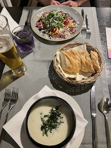 Read moreNette Bedienung. Ambiente gemütlich. Leider war das Essen ein Reinfall. Wir hatten aufgrund der sehr minimalistischen Karte hier viel mehr erwartet. Bestellt wurde teurer Seeteufel, der entweder roh war oder von sehr schlechter Qualität (oder beides)- paniert - kaum essbar. Und das obwohl das Essen eigentlich total hübsch angerichtet wurde, sehr komisch und schade. Und dann noch Spagetti Pesto - diese wurde zwar am Tisch einem großen Käse geschwenkt - war aber sehr wässrig und eine der schlechtesten Pastas die ich je gegessen habe. Immerhin gab es als Entschädigung zwei...