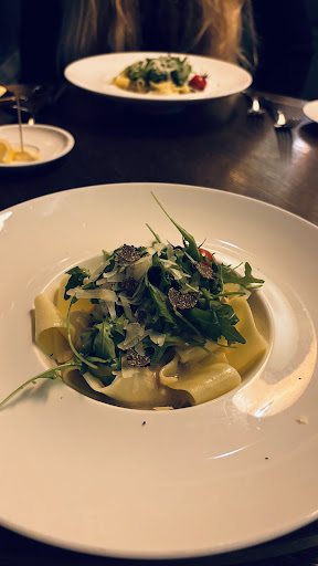 • Trüffeltagliatelle: Die Pasta war deutlich zu weich gekocht und eher Parpadelle als Tagliatelle. Der Trüffelgeschmack war kaum wahrnehmbar, und die Temperatur des Gerichts war enttäuschend, der Teller war wärmer als das Essen selbst.