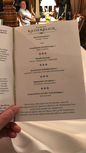 Read moreWir hatten an unserem letzten Abend im Ahlbecker Hof einen Tisch im Kaiserblick reserviert und uns für ein Drei-Gang-Menü mit Weinbegleitung entschieden. Neben dem hervorragenden Service durch die Mitarbeiter war nicht nur das Essen erwähnenswert, sondern auch die sehr launige Unterhaltung durch den Sommelier. Wir sind keine Weinkenner, wissen jedoch durch die kurzweiligen Erklärungen zur jeweiligen Auswahl mehr zu den jeweiligen Weinen als zu jedem anderen Getränk. Wir haben gut und gern gelacht, dafür einen besonderen Dank. Ein kurzer Blick auf den Hauptgang: das Rinderfilet war eine Offenbarung! Es war ein sehr gelungener Abschluss unseres Urlaubs und wir sind sehr froh, dass wir uns auch noch für den Kaiserblick entschieden haben. Wir freuen uns auf das...