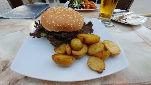 Read moreFür "Burgerfans" und Biertrinker mag das vielleicht passen, mehr aber auch nicht. Meine Partnerin hatte eine steinharte Laugenstange (leider machte sie aber vor Ort den Mund nicht auf)mit irgendwas dazu, ich bestellte eine "Currywurst" mit einer auf einer Seite verbrannten Kruste, die Kartoffeln dazu waren "geschmacksneutral", die "Apelschorle" ebenfalls, da hätte ich auch ein Wasser bestellen können. Wir ärgerten uns daß wir nicht nebenan gegessen hatten wie tags zuvor. Bei der Trauermiene welche die Bedienungen vor sich her schoben, war ich überrascht daß wir gefragt wurden wie es geschmeckt hat, eigentlich hatte ich keinen Bock das zu kommentieren, aber bitteschön, wie gewünscht kommentierte ich das wie oben beschrieben... die Bedienung wollte dann noch diskutieren "das sei ja keine Bratwurst in dem Sinne (?? naja weder in der Fritteuese noch mit dem Fön verbrennt die einseitig...) ...blabla...und die "Apfelschorle" sei "frisch", aber diese Haarspalterei war irrelevant und konnte nichts retten, das war einfach nur völlig daneben in...