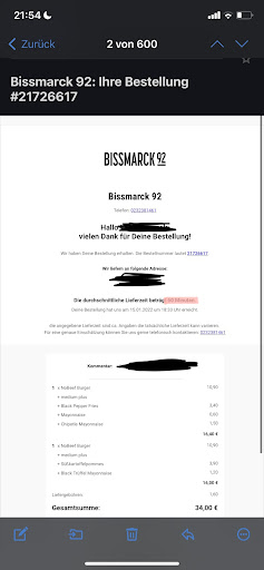 Desweiteren zum Positiven: Überwiegend Pappverpackungen, sehr umweltfreundlich! Der Fahrer heute war mega nett, auch zu unseren Kids, echt Klasse! Auch der Mann am Telefon war nett und geduldig - selbst als ich anrief um mich zu beschweren, dass es so lange dauert! Die Pommes waren der Hammer. Ich habe noch NIE so gute Liefer-Pommes gegessen (und wir wohnen nicht ums Eck) Das ganze Essen war warm und frisch, trotz langer Wartezeit Pizza und Burger auch sehr Lecker
