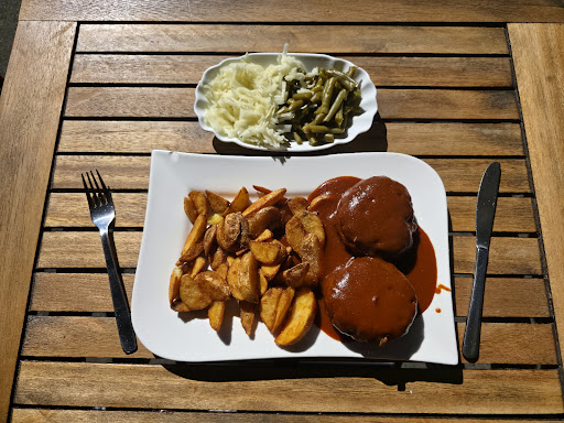 Read moreHeute waren mein Mann und ich das erste Mal da,rappelvoll erstmal keinen Sitzplatz,hat das nette Personal unsere Bestellung aufgenommen, für mich Currywurst Pommes,mein Mann hatte den pulled pork burger, relativ schnell wurden Plätze frei,nach einer (etwas zu langen) Wartezeit,konnten wir probieren. Mein Essen war ganz lecker,Pommes schön knusprig, Currysauce auch geschmacklich Topp,Wurst leider kalt. Der Burger meines Mannes war eine Katastrophe,das Fleisch furztrocken,am Brötchen kaut man gefühlte 10 min rum,da hatten wir uns mehr von versprochen,schade Lieber das anbieten,was man auch geschmacklich gut zubereiten kann,schade,wir kommen nicht wieder