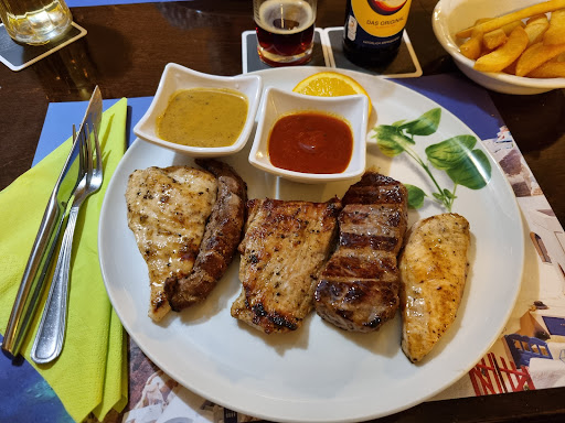 Ich habe nun zum ersten Mal in dieser Griechischen Taverne zu Abend gegessen. Wir kamen zu fünft zu dieser Lokalität. Dieses Lokal hat einen eigenen Parkplatz und ist damit nur einen Sprung entfernt. Desweiteren besitzt die Taverne neben der Treppe auch eine Rampe welche es erlaubt mit einem Rollstuhl oder auch Rollator problemlos zum Eingang zu gelangen(Großer Pluspunkt). Augenscheinlich von Außen eine sehr schöne Taverne mit angrenzender Terrasse. Waren leider im Winter dort, deswegen fließt die Terrasse nicht in die Beurteilung. Der Innenraum ist spartanisch eingerichtet, aber die Gestaltung der Wande würde Athene sehr gefallen. Nun zu dem wichtigsten Punkt, dem Essen: