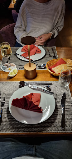 Die Speisekarte enthält für jeden Geschmack etwas, auch Vegetarisches. Mir persönlich sind kleine, feine Karten lieber als eine Küche, die versucht, aus jedem Gebiet der Welt etwas zu bieten und nichts so richtig kann. Hier findet wirklich jeder, auch für jeden Geldbeutel, etwas. Vermeintlich einfache Gerichte wie Spaghetti Bolognese, ein für mich hervorragendes Schnitzel, super plattgeklopft, frisch paniert, kein Convenience. Sonstige Gerichte auf unserem Tisch, zu denen ich aus dem Mund der Verzehrerinnen auch nur ein Mmmmmmhhhhh hörte, waren der Lachs und das Schweinefilet, außerdem beide Vorsuppen, die auf raffinierten Tellern angerichtet wurden, bei denen wir direkt mal gefragt haben, wo es die wohl zu kaufen gibt. Das Auge isst ja bekanntlich mit, auch hier wird man bestens bedient. Es war alles sehr ansprechend arrangiert und passte auch geschmacklich einfach gut zusammen.