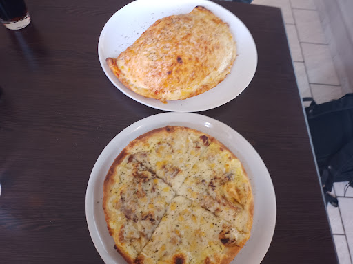 Der Tisch war leider dreckig. Ein bisschen Mehl war über den Tisch zerstreut. Nach ca. 10 Minuten kam das Essen. Ich bestellte mir eine Pizza Gyros mit Sauce Hollandaise. Der Geschmack war echt gut. Der Teig war sehr fluffig und der Käse zerlief. Mein Kollege hatte eine große Calzone bestellt. Und ja, sie war wirklich riesig (siehe Bild). Er war vom Geschmack überzeugt.