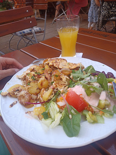 Zur Mittagszeit mal etwas leckeres essen gehen, da wählt man dann mal ein Lokal welches man noch nicht besucht hat und geht ins Bergschlößchen. Zunächst gab es eine Suppe, danach wurde der Salat kredenzt, als Hauptspeisen wurden einmal Spargel mit Rumpsteak und einmal Pfefferrumpsteak mit Kroketten gewählt. Beide Speisen machten bildlich einen guten Eindruck dennoch gab es bei einem Gericht ein winziges Problem, welches sofort durch die Küche korrigiert wurde. Die Speisen waren von guter Qualität und gut zubereitet, der Geschmack entsprach den Erwartungen, lediglich die Hollandaise machte den Eindruck, als käme sie aus einer Fertigpackung, dafür war sie dann aber doch wieder recht gut. Als Nachspeise gab es dann noch einen Bananesplit (Standard) und einen anstatt mit Vanilleeis wurde Walnusseis gewählt, die Bananen waren nicht ganz die Frischesten (schon leicht angedunkelt), das Vanilleeis war von recht guter Qualität, das Walnusseis dagegen etwas wässrig im Geschmack, die zum Bananensplit gehörige Sahne war leider eine Fertigsahne aus der Sprühflasche. Im Ganzen gibt es somit ganz knapp 4 von 5 Sternen. Der ganz so positive Eindruck den andere Gäste von dort berichten, kann zumindest dieses mal nicht ganz nachvollzogen werden. Bei diesen hochpreisigen Speisen dürfte das Gesamtpaket doch noch ein wenig...