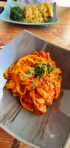 Alles in Allem zu empfehlen. Das Essen dort ist qualitativ gut, die Pizza schmeckt außerordentlich gut, ist jedoch leicht zu fettig. Die Nudeln schmecken gut, etwas mehr Würzung wäre okay, jedoch ist das auch natürlich eine persönliche Geschmackssache. Die „Brötchen“ als Vorspeise dürften ruhig mehr sein, wenn man mit vielen Personen am Tisch sitzt. Die Preise sind etwas gehoben für die Lage, die ja eigentlich nur von Tennisplätzen umgeben ist und von den Speisen her. Die Inhaber waren nett. Laktosefreie Cafés gibt es leider nicht. Hunde sind auch erlaubt, da wir sahen, dass eine Tischgruppe nebenan einen dabei hatte, was wir sehr...
