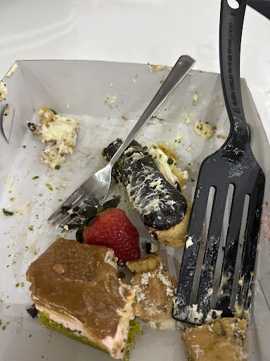 Read moreMehr Schein als Sein. Der Laden sieht ganz gut aus, die Kuchenauslage am Eingang links ist sehr ansprechend und die Auswahl ist gross. Das war es auch schon mit den positiven Aspekten. Gelangweiltes Personal, keine Bedienung am Tisch, die einzige Servicekraft, die im Gastraum herumläuft, schaut grimmig und ignoriert gekonnt die Gäste. Wir haben uns dann einfach an einen freien Tisch gesetzt und nach 15 Minuten Ignoranz durch das Personal haben wir uns schließlich am Buffet bedient. Das Frühstücksbuffet war geschmacklich akzeptabel, jedoch waren die heissen Speisen maximal lauwarm. Ein zum mitnehmen an der Theke gekauftes Tahinli Ekmek war hart und trocken, vom Eindruck her mindestens vom Vortag. Bezahlt haben wir dann beim Herausgehen an der Thekenkasse, wir hätten allerdings auch einfach ohne zu bezahlen gehen können, so ein Desinteresse habe ich noch nie erlebt. Alles in allem sowohl geschmacklich als auch vom Service her...
