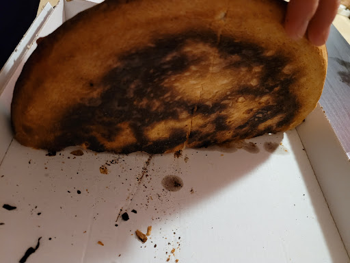 Durch meinen Anruf bekamen wir zwar einen 10%igen Nachlass. Allerdings mussten wir das Pizzabrot wegwerfen, da es nicht nur ungenießbar war, sondern verbrannt und steinhart. Beim abbeisen hat es gekracht wie ein total überwürzter, uralter Bundeswehrkeks.