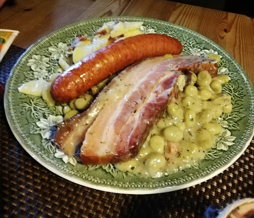 Meine Frau war drauf und dran zwischenzeitlich das Restaurant wieder zu verlassen. Als dann doch unser Essen kam (Sülze, Kinderschnitzel, Toast Hawaii), habe ich mal nachgefragt, ob denn der bestellte Glühwein (uns war ja vor einer Stunde kalt gewesen) noch kommen würde, doch der war wohl übergekocht! Wir haben dann auf Wasser und Cola umbestellt, diese Getränke kamen dann auch prompt und so mussten wir dann doch nicht verdursten. Apropos Küche: diese ist weitgehend offen (leider), Kockmütze/Haarnetz trotz langer Haare? Fehlanzeige! Da stört der Hund, der auch in der Küche und im Gastraum herumschleicht, auch nicht mehr. Erstaunlich, dass sich das mit den strengen deutschen Hygieneauflagen so vereinbaren lässt.