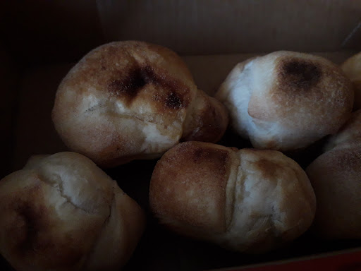 Wir haben uns 4x Pizzen und 2x Pizza Brötchen mit Aioli bestellt und abgeholt. 5min. Auto Fahrt.