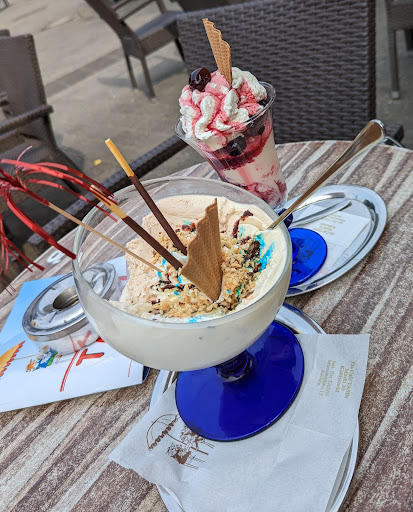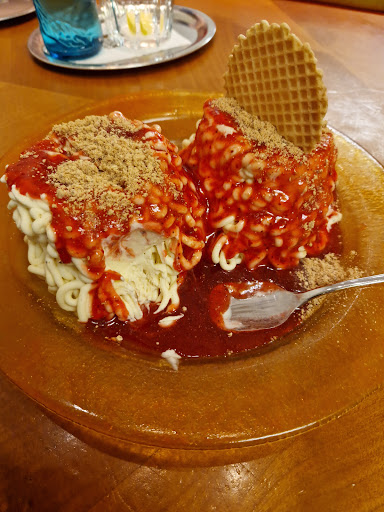 Ich hatte ein sehr gutes Leckers Spaghetti Nuss Eis. Sehr schön angerichtet. Das Eis hatte keinen künstlichen Geschmack. Die Dekoration auf dem Eis sah sehr gut aus.