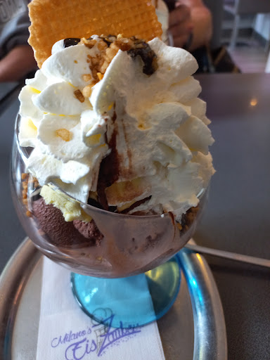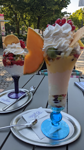 Toll eingerichtete Eisdiele mit großer Terrasse, die durch einen Wintergarten ausgestattet mit Heizstrahlern auch bei schlechterem Wetter draußen Sitzmöglichkeiten bietet. Alle Plätze sind zu jeder Zeit sehr hygienisch und ordentlich aufzufinden. Das junge dynamische Team ist sehr zuvorkommend, freundlich und immer bei guter Laune. Über das Eis muss man nicht viel schreiben, das ist wie bekannt das beste in Aachen. Andere Mahlzeiten ob Frühstück oder Baguette am Nachmittag sind ebenfalls empfehlenswert! Insgesamt eine tolles Lokas mit großer Karte, wo man immer wieder gerne...