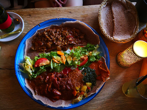 Read moreVery cool place. The atmosphere is relaxing the location very good. You can sit on a normal chair around a table or most interesting on the pillow on the floor. Yesterday me and my friend decided for the second one and she took off her shoes. Other interesting things is the plats. First they're original African( Eritrean) recipes, second they're served in only one plate and without any piece of cutlery. I advice also to order their glass of water with lime, mint and maybe a kind of syrup very tasty. Just pay attention you must...