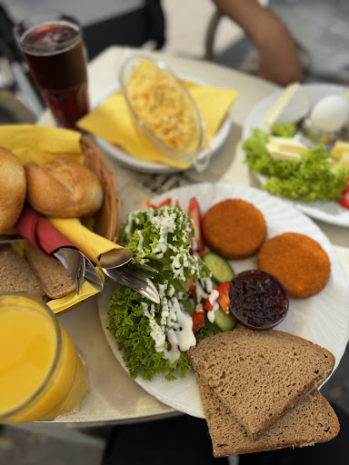 Read moreWir waren zum Frühstücken dort. Bereits zu Beginn wurde uns gesagt, dass heute alles etwas länger dauert - soweit kein Problem für uns. Frühstück kam schließlich nach über einer Stunde, obwohl wir nichts warmes bestellt hatten. Aufschnitt und Käse billigste Ware. Uns wurde dann beim Servieren mitgeteilt, dass es leider keine Croissant mehr gäbe - wurde ohne Rücksprache durch ein Aufbackbrötchen ersetzt, natürlich aber zum vollen Preis. Sehr schade, hätten wir das vorher gewusst, hätten wir uns sicher nicht für das Croissantfrühstück entschieden (in dem das Croissant nun mal den Hauptbestandteil ausmacht). Bei Nachfrage wurde uns mitgeteilt, dass der Bäcker morgens anscheinend insgesamt nur 6-7 Croissants liefert, die dann bei hohen Gästezahlen am Wochenende schnell ausverkauft sind. Für mich nicht ganz nachvollziehbar, weshalb man da nicht besser vorausplanen kann. Service schien insgesamt sehr überfordert und war sehr unfreundlich. Wir saßen draußen, im Inneren des Cafés stapelte sich auf einem großen Tisch das schmutzige Geschirr, da die Küche offenbar mit Spülen nicht hinterherkam. Sehr unschön für die Gäste an den Tischen direkt daneben. Frühstück selbst war geschmacklich ok, aber nichts besonderes. Wir würden nicht...