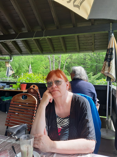 We were staying nearby and decided to give this place a try. It is tucked away in the woods and we got to it by very good woodland tracks. What a delight! We were sat on the verandah overlooking the fishing pond. Good menu - all German, but a good variety of food including steaks, fish and vegetarian. My husband opted for the schnitzel and I had the trout - we were able to find out what each dish was by speaking to other diners. Our waitress did speak limited English and we got by. Desserts very nice - I had the black forrest sundae and my husband had the home made strudel. All delicious. We had a really lovely evening. Thank...