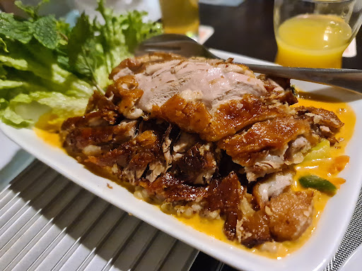 Read moreEins vorweg: ich bin Student, ich bin wirklich nicht der anspruchsvollste Kunde. Die Vorspeise hat 1/2 Stunde gedauert, war aber ok. Die Hauptspeise hat etwa 1,5 h(zusätzlich zur Zeit von der Vorspeise, also über 2h) gedauert, obwohl das Lokal weder besonders groß ist noch besonders voll war. Eine Freundin hatte eine Kanne Jasmin Tee bestellt und eine Tasse Kamillentee bekommen, ok kann passieren. Eine andere hatte eine kleine Apfelsaftschorle bestellt und eine große bekommen. Naja auch noch ok. Das Essen war einfach nur schlecht. Bei 8 Personen war ein Essen falsch, bei einem das Huhn nicht durch, die Soße war höchstens mittelmäßig, und das bei süß-sauer Soße... Bei dem Essen hat die Zucchini gefehlt, obwohl das in der Karte so stand. Den Nachtisch haben wir uns dann gespart, weil keiner Lust hatte nochmal 1/2 Stunde zu warten. Die Toiletten sind nicht besonders sauber. Die Rechnung war eine Katastrophe. Dem einen wurde mehr abgerechnet, dem anderen zu wenig... Es wurden andere Essen abgerechnet als wir bestellt haben. Keine Spur von Kulanz oder eine Entschuldigung. Positives: Es gibt ausreichend Parkplätze.