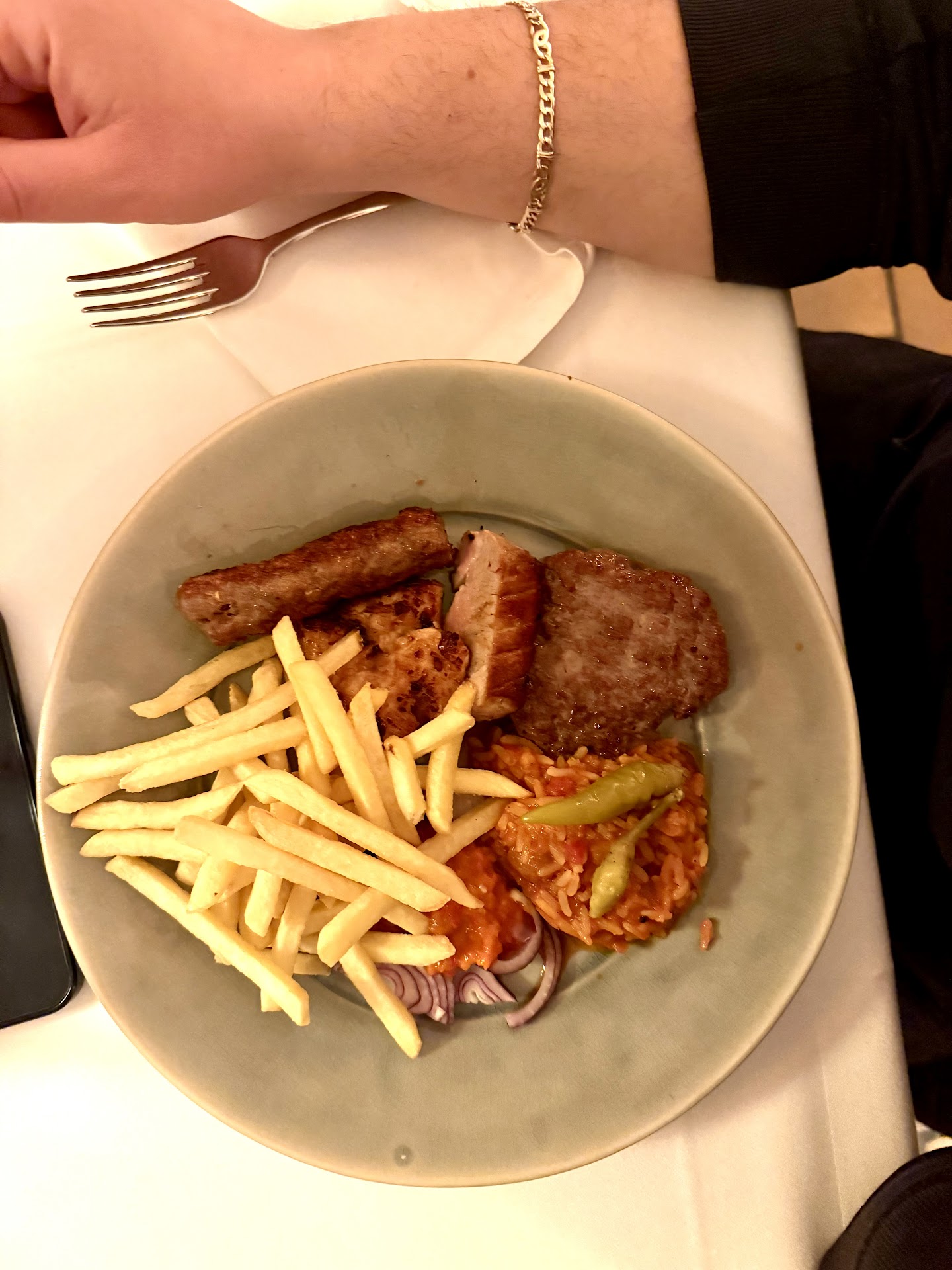 Die Weihnachtsfeier war dann das genaue Gegenteil. Es waren zuviele Gruppen am selben Tag in dem Restaurant. Was völlig in Ordnung ist wenn das Personal damit umgehen kann. Dies war aber leider nicht der Fall. Wir mussten am Ende 3 Stunden auf unser Essen warten. FĂŒr das Restaurant viele Einnahmen durch GetrĂ€nke in der Zwischenzeit...aus meiner Sicht viel zu lange Wartezeit... das Essen selbst konnte auch nichts wieder Gut machen. Ich hatte einen Grillteller bei dem das Fleisch zu trocken war. Die cevapcici waren dermaĂen ĂŒbersalzen und das Schweinefleisch schmeckte auch bei allen anderen Sauer. Preis LeistungsverhĂ€ltnis grauenhaft. Service durch und durch ĂŒberfordert. Leider muss ich nach dieser Erfahrung 2 von den 4 Sternen...