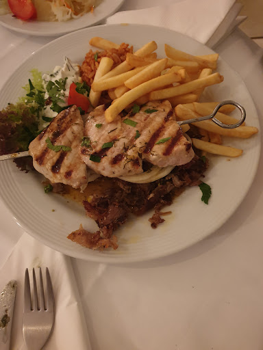 Wir hatten als Vorspeise gefüllte Weinblätter, Knoblauchbrot und Tzatziki. Die Weinblätter waren okay, aber sehr zitronig. Sad Knoblauchbrot war billiges TK Baguette aufgebacken, in Schrägscheiben geschnitten, iwas knoblauchhaltiges und Käse darüber. Leider nicht mal knusprig überbacken. Das gereichte Brot war ebenfalls das TK Baguette... :( Als Hauptspeise hatten wir Gyros und Gyros Platte. Dazu kam vorneweg ein Salat. Die Zutaten schienen größtenteils frisch zu sein, jedoch waren sie in einer Joghurtsauce ertränkt. Das Gyros war alles andere als frisch. Total trocken, fettig und zäh. Den Reis habe ich nicht gegessen, dafür aber die Pommes. Die waren auch nur halb knackig und nicht gewürzt. Dazu kam noch, dass alles nicht mehr heiß war. Der Spieß von der Gyros Platte war noch mit das Beste, neben dem Tzaziki.