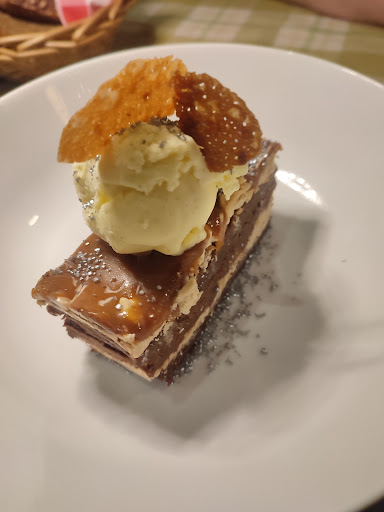 Read moreNicht nur, dass man hier als Veganer darben muss, der Salatteller besteht nur aus Grünem und lässt sich dadurch langweilig essen und schmeckt halt auch grün. Was meine Leute gegessen haben, hat mich zumindest von der Menge nicht überzeugt. Aber am Ende einen ordentlichen Betrag da gelassen. Da haben mich die kleinen Snacks währen der Vorstellung mehr überzeugt und mich zu dem Ergebnis gebracht, das Theaterlokal wäre nicht nötig gewesen. Also der Wert der Eintrittskarte ist dann etwa nochmal so viel für den Verzehr draufgegangen. Da war ich doch mal ganz schön spendabel, für einen kurzen, aber lustigen Abend zu dritt. Es ist immer wieder schön im Theater, aber das nächste Mal sollten wir alle bereits satt...