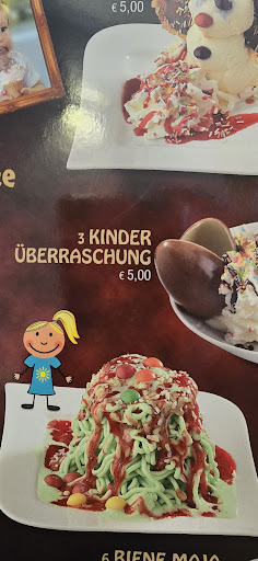 Read moreLeider verlief der Besuch sehr enttäuschend. Es ist irgendwie alles schief gelaufen. 4 Eisbecher (Eiskugeln/Kindereisbecher) bestellt und davon waren drei falsch. Einer hatte Sahne zu viel obwohl die Person das nicht mag. Der andere Eisbecher hatte vermutlich Haselnusseis anstatt Cockie Eis. Der Kindereisbecher hatte keinen Löffel, No-Name-Ei anstatt "Kinder Überraschung" wie es in der Karte steht. Das schlimmste war aber das Mangoeis was nicht danach aussah und eher wie Melone schmeckte als nach Mango. Die Eiskugel hatten wor reklamiert, aber es wurde versichert, dass es Mango ist. Vermutlich war noch Eis von der Kugel davor dran. Irgendwie ein no-go den Geschmack von fremden Eis dran zu haben. Der Service war unaufmerksam und nicht sonderlich freundlich. Das Augenrollen beim Verlassen haben wir registriert. Bitte einfach die Bestellung richtig machen, dann gibt es keinen Grund reklamieren zu müssen. Fehler passieren es waren aber zu viele. Geschmacklich war der Rest okay. Es war leider der letzt Besuch. Dann fahren wir lieber...