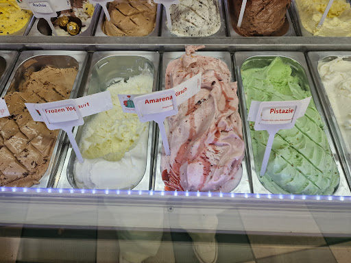 Read moreUm 14 Uhr haben wir uns mit meiner Mama hier getroffen... Bis zur Bestellung war es ca 14:05 Uhr Es gab weder Früchte-, noch Cappuccino Eisbecher, naja - ist dann halt mal so. Kartenzahlung bei 7 Personen wurde ebenfalls abgelehnt. Wie gut, dass eine Bank direkt gegenüber war. Es hat vllt 10 Minuten gedauert (14:15 Uhr), da kam für alle zusammen das Eis an den Tisch. Ich möchte es allerdings gar nicht als Eis betiteln. Es schwomm schon etwas als es gebracht wurde, nach 3-4 Löffeln, rief ich die Servicekraft an den Tisch und fragte sie nach der Außentemperatur "26°" okay, wir saßen im Schatten und meiner Erfahrung nach, hätte das Eis nicht schon schwimmen dürfen. Als Antwort bekamen wir "was kann ich jetzt dafür?" Wow! Wir waren geschockt und fragten wie es sein kann, dass das Eis schon so aussieht, darauf wollte sie keine Antwort geben und vertröstete uns damit, ihren Kollegen zu schicken. Der kam dann auch nach weiteren 5 Minuten. Ich stellte ihm die Fragen, wie zuvor seiner Kollegin und bekam als Antwort "Man kann nicht nach einer Stunde erwarten, dass das Eis noch kalt ist". Da bin ich geplatzt (nicht nur ich). Das war sowas von unmöglich. Ich sagte ihm daraufhin, dass er meine Suppe und die meiner Mutter mit nehmen kann, da wir Eis essen wollten (die konnten froh sein, dass meine Kinder es einfach so hingenommen haben). Er ging einfach. Als ich hinterher ging, fragte ich nach einem Thermometer um das Eis in ihrem Fach zu messen. Sowas besitzen sie dort nicht, es würde ja angezeigt werden, wie die Temperatur des Gerätes wäre. Aus Erfahrung weiß ich, dass man darauf nicht viel Wert legen kann. Die nächste Aussage war "ich habe keine Zeit mit Ihnen zu diskutieren". Alle Aussagen haben mich dermaßen auf die Palme gebracht, dass ich nicht mehr nett reden konnte, was sie mir dann auch vorgeworfen haben. Sorry, aber bei solch einem Personal, welches nicht mal ansatzweise auf den Gast eingeht, im Gegenteil, sogar freche Antworten gibt, die auch noch gelogen sind... Braucht man sich nicht wundern. Am Ende gab er mir die Rechnung für 7 Eisbecher - ein weiteres Tamtam - denn das sah ich absolut nicht ein, bezahlt habe ich dann nur 5, nachdem ich einen Aufstand gemacht habe. By the Way, wir verließen den Laden eine halbe Stunde später - 14.30 Uhr (von wegen wir hatten eine Stunde am Eis gesessen). Unsererseits absolut nicht...