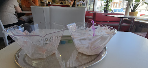 Read moreVor ein paar Tagen war ich mit mehreren Freunden dort und freuten uns eigentlich drauf. Aber nicht lange. Schon bei der Bestellung wurden wir etwas unfreundlich darauf hingewiesen, dass wir an der Theke bestellen müssten, da es nur noch Selbstbedienung gibt. Als ob wir die Karten mitnehmen wollten. Nachdem wir uns etwas ausgesucht hatten, bestellten wir. Anstatt wie üblich das Eis in Gläsern oder Schalen serviert zu bekommen, wurde es in die billigen Mitnehmschalen aus Plastik gefüllt. Einen Metalllöffel bekamen wir auch nicht, wie auch die Schalen war er aus Plastik. Bei einigen waren Erdbeeren mit dabei, die mit bloßen Händen angefasst wurden. Naja, mag sein, dass das empfindlich aussieht, aber üblich ist das nicht. Und die Waffeln oben drauf waren auch gefühlt vom letzten Jahr. Also wenn ich in ein Eiscafe gehe erwarten wir keine Selbstbedienung, sondern möchten bedient werden. Das gehört für uns alle dazu. Wir vermuten, dass der Besitzer gewechselt hat, schade eigentlich, der hätte und hat von uns 5 Sterne bekommen. Definitiv war es für uns das letzte Mal, dass wir dort waren. Absolut keine...