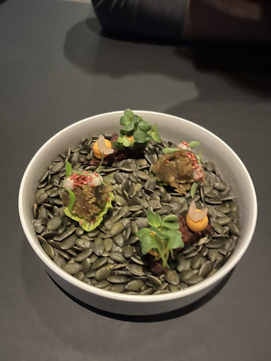 Fantastic experience. The set menu was a flavor explosion. The menu had 6 courses, but we ended up being served 10 dishes over 3 hours. I had a non-alcoholic pairing, which consisted of various juice like drinks that were all sounding quite strange but tasted really nice. The different courses were well thought through and had different tastes and textures, but each single dish was super flavorful. Service was top notch, friendly, charming and funny. Plates were cleared and glasses refilled like clockwork. As expected every dish was also explained and questions were answered. Atmosphere is modern minimalistic design, I found the music well selected. Everything was fitting.