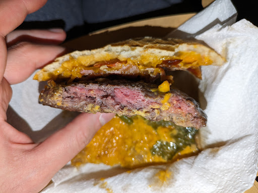 Die Patties der Burger sind super lecker und im Gegensatz zu großen Fastfoodketten Handgemacht. Es gibt mehrere Verschiedene tolle Burger Kreationen. Ein Burger macht auch wirklich satt, da sie groß und reichhaltig belegt sind. Einen Service am Tusch gibt es nicht, es ist Selbstbedienung bzw. man bestellt direkt am Stand und holt es auf Zuruf auch dort ab. Der Mitarbeiter war wirklich nett und hat uns hervorragend beraten Insbesondere hat er unserem ältesten Sohn eindringlich von einem größeren (und teureren) Burger abgeraten, oder etwa Pommes zu seinem Burger zu nehmen da er das unmöglich schaffen kann. Sehr fair! Fazit: leckere, frische Burger die mit viel Liebe zum Produkt...