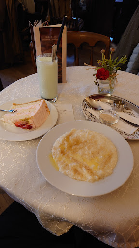 Hier muß differenziert werden. 3 🌟🌟🌟 in Ordnung. Leckere Kuchen und Kleinigkeiten, allerdings auch schwierig sympathisch das Preis-Leistungs Verhältnis zu loben, aber wie oben ☝️ erwähnt, alles noch by the way. Heute hatte ich ausnahmsweise mal Lust, ein pikantes zu essen in meinem Fall ein Brötchen mit rohem Schinken zu essen. Ich bat aufgrund meines fehlenden Gebisses, nicht ZU HARTE Brötchen zu servieren. Daraufhin frug die Bedienung: Keine Ahnung, weiß ich doch nicht wie die Brötchen sind, soll ich vorher reinbeissen? Ich zupf mir das schon zurecht, eine andere Bäckerei versucht immer so halbwegs helle zu nehmen. Egal DEN Witz hab ich nicht verstanden und diffamiert mich auch (mal ab selbst wenn ich ein Gebiss HÄTTE, gibt es einige ältere Semester, die nun auch eher mal kaubares haben möchten) das Brötchen war okay, aber ich hatte den Kaffee auf. Andere Gäste hatten auch eigene Schwierigkeiten und waren über die Bedienung geschockt! Ein Tisch hat nur widerwillig Trinkgeld gegeben. Zwischendurch war eine ganz liebe Bedienung (leider nicht für mich zuständig) die nach meinem Klogang und kurzem Gespräch mit einer Dame Tränen in den Augen hatte. Ich hätte bei Ihr vielleicht Trinkgeld gegeben, zumal die Bedienung einige Wochen zuvor frech "stimmt so?" von Trinkgeld ausging. Auch wenn es mir schwer fällt, ich werde irgendwann nochmal einkehren und solange kein Trinkgeld geben, bis sich der Ton nicht ändert und wenn ANGESTELLTE welcher Art auch immer - Tränen in den Augen haben, kann der Kuchen noch so wunderbar sein, das sehen sensible Gäste, da seid ihr nicht das Aushängeschild. Übrigens kann man durchaus mal Entschuldigung...