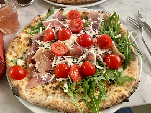 Freitag Abend, ohne Reservierung ist es so gut wie unmöglich spontan einen Tisch zu bekommen. Wir hatten also reserviert. 2 Personen. Die Akustik aufgrund des kleinen Raumes ist sehr laut, die Tische und die die Tischstellung sehr eng. Man konnte dem Gespräch des Nachbarn folgen, ohne es zu wollen. Tischdeko oder ähnlich nicht vorhanden , aber auch nicht gewollt. Es geht hier nicht um Atmosphäre, zumindest nicht gefühlt und nicht für mich. Die Bedienung ( wie alle) sehr, sehr freundlich, aber aufgrund der Restaurantfülle völlig überfordert, so dass ein zweiter Blick, ein zweites Getränk, oder das Nachfragen ob das Essen okay ist, erst beim Abräumen möglich war. Zur Pizza San Daniele ( 17€) eine Pizza ohne Tomatensauce. Auf Nachfrage bei der Bestellung, ob sie trotzdem gern genommen wird, kam die Antwort, ja sie hat ja auch viele Tomaten drauf. Erwartet hatte ich eine Pizza mit mehr Käse, ruccola, Schinken und Kirschtomaten( warm) auf dem natürlich besonderen Pizzateig. Bekommen habe ich den „Pizzateig“ ( natürlich fertig) mit viel Ruccola, Kirschtomaten ( ziemlich Geschmacklos und leider kalt) und Schinken. Vom Käse leider keine Spur oder so wenig, dass es nicht aufgefallen ist. Die Pizza ließ sich auch mit dem Käsemesser nicht wirklich schneiden. Alles in allem, zumindest für mich, nicht das was ich mir unter dieser hochgelobten, sehr teuren Pizza, gewünscht und erwartet habe. Zusammengefasst nochmal, sie war nicht schlecht, aber auch nicht herausragend und das alles ist immer...