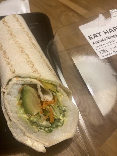 Ich habe mir für 7,99€ einen Avocado Mango Wrap gekauft. Die Hälfte des Wraps war nicht gefüllt und es gibt nur zwei kleine Mangoscheiben. Das sieht man erst beim herausholen, scam. Für den Preis sehr enttäuschend. 2 Sterne, weil er...