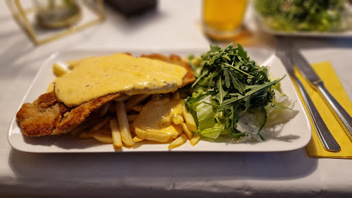 Read moreWar eben mit meinen Freundinnen dort. Da das Wetter schön war, haben wir draußen auf der gemütlichen Terrasse gesessen. Da ich die Currywurst Deluxe liebe, war eigentlich klar was ich esse. Aber als alle Schnitzel essen wollten, habe ich mich dem Gruppenzwang ergeben und den Schnitzel Burger gegessen. Es war der Hammer. Ein riesen Schnitzel geteilt, dazwischen Käse und oben drauf Salat mit einer super leckeren Soße. Dazu knusprige Pommes. Es war so viel, dass es für mich unmöglich war alles aufzuessen. Als es etwas kühler wurde, haben wir sogar Decken bekommen. Wir waren bis Lokalschluss da. Alle waren wir uns einig. Es war ein toller Abend. Gutes Essen, guter Service und nette Gespräche. Unser nächstes Treffen wird auch wieder hier...