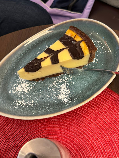 Ich war heute erstmalig, sicher aber nicht letztmalig dort. Wo soll ich anfangen? Als ich reinkam muß ich zunächst etwas touristisch furchterregend gewirkt haben meine Haare leicht wirr, was dem EEG geschuldet war, zudem kniff ich die Augen zusammen und grüßte mit der Hand vor der Stirn, was damit zu tun hatte, das ich a) nicht fassen konnte das der Cappuccino groß 3,90 kosten sollte und ich b) meine Fernbrille nicht aufhatte. Ich frug was den wohl der Preis an der Tafel sei, ich hätte mein Augenlicht vergessen. Die Bedienung war aber umwerfend hilfsbereit und ich entschied mich für einen kleinen Cappuccino der seinem Namen aller Ehre machte aber umwerfend lecker war! Zudem nahm ich die Gelegenheit beim Schopfe denn ich wollte eine Waffel mit Kirsche und Sahne ohne Eis. Dies dauerte seine Zeit, es dauerte wirklich lange. Als ich endlich meine Waffel bekam frug ich lauter, ob diese aus Italien importiert geworden wäre, es wäre etwas lange gewesen und ich suchte nach der Sahne. Die bezaubernde Bedienung entschuldigte sich und kam mit Extra Sahne wieder. Zudem hätte es gedauert weil der Chef im Nachhinein um 10.44 normalerweise keine Waffel machte was mir wiederum leid tat. Super lecker 😋, für den Preis super groß. Ich hoffe das machen die nächstes Mal auch wieder. Preislich ein kleiner Punktabzug für Menschen mit nicht viel Geld 💰, aber die Sparkasse ist ja vom Restaurant clever gewählt nebenan. Bedienung wirklich...