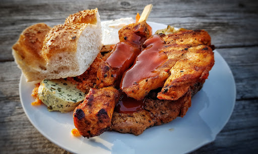 Read moreWenn man das Restaurant betreten möchte laden die Sitzgruppen mit den nicht angezündeten Grills eigentlich zum Verweilen ein. Sieht toll aus, hätte auch der Burner für Gäste sein können, die noch nie vor Ort waren..aber nix war nach dem Motto" es ist Winter " kalte Sitzkissen,Tischgrill aus... Das Restaurant war und blieb trotz vieler Menschen sehr kalt. Deckendeko geht gar nicht, es sah aus als wären grüne,lange Trockenpflanzen lieblos über die Stangen der Decke gestülpt wurden um diese zu "verstecken". Sessel schon etwas durchgesessen und in Kniekehlen sehr hart. Das Besteck am Buffet war sehr sehr kalt. Die Teller aus Steingut sahen sehr hübsch aus,aber sie waren nicht nur schwer sondern ebenfalls sehr kalt. Das Essen, die Salate/Vorspeisen sahen abwechslungsreich aus. Überall standen Schilder mit knappen Hinweis was vor einem stand. Ich hatte mich auf leckeren geschmackvollen Salat gefreut wurde leider enttäuscht. Ok es ist Winter, trotzdem gibt es Tomaten und andere Gemüse welche schmecken. So lagen ganze Cocktailtomaten ziemlich lieblos neben Mozzarellabällchen, kein Essig, Öl oder Dressing stand auf Buffet.... Beim Rucola kaute man stellenweise auf Erde rum. Leider war bei unserem Besuch die gesamte 1."Fuhre" Fleisch total kalt und mehr als "totgebraten" also sehr zäh und trocken. Da half auch kein Nachschlag in der Hoffnung nun das Fleisch direkt vom Grill zu bekommen. Schade gerade bei mindestens 3 verschiedenen Fleischsorten sollte man als Griller schon mal aufpassen. Gegrilltes Gemüse welches unter einer Wärmelampe stand war auch kalt. Tipp: man nimmt vielleicht Tablets die von der Größe genau unter die Wärmelampe passen sonst braucht man keine Wärme(!) lampe. Oder man kennzeichnet das gegrillte Gemüse als kaltes Gemüse.