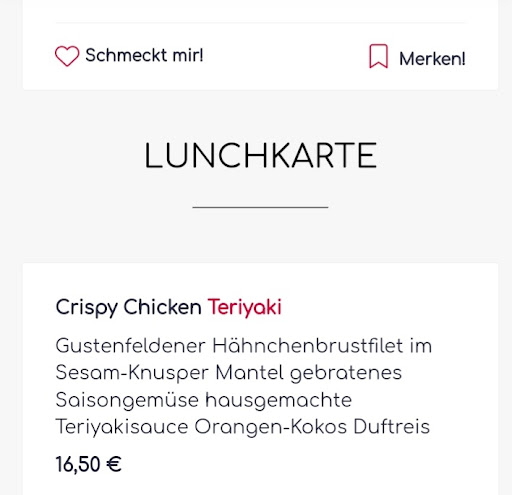 Read moreWir waren am Samstag Abend um 17:30 Uhr dort. Wir waren die ersten Gäste. Uns wurde gesagt, dass die Küche heute später aufmacht (um 18Uhr) da eine Hochzeit stattfindet. Wir haben derweil etwas getrunken. Um 18:00Uhr wollten wir was zum Essen bestellen. Uns wurde von der jungen Bedienung nochmals gesagt, dass es etwas länger dauern wird mit dem Essen. Bis jetzt war alles kein Problem. Ich war auf Empfehlung dort und hatte mich schon sehr auf das Essen gefreut. Wir haben zweimal Orangen Curry mit Hähnchen bestellt. Für eine Portion 16,50 EUR waren genaue 2 kleine Hähnchenstückchen auf dem Teller. Geschmacklich war es eigentlich gut aber bin leider hungrig wieder heimgegangen. Die Soße war auch sehr dünnflüssig. Ich esse öfters Curry aber so eine kleine Portion für den hohen Preis hab ich noch nie erlebt und mit abgezählten Fleischstückchen. Wir haben es der Bedienung weitergegeben aber es kam von der Küche keine Reaktion. Obwohl mir der Gartenbereich sehr gut gefallen hatte, bin ich vom Essen sehr enttäuscht. Sonst wäre ich gerne öfters hingegangen. Vielleicht haben wir das falsche Essen...